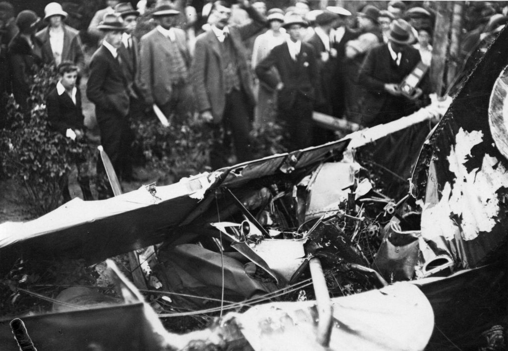 They took off from Wigram just after 5pm in the afternoon and after half an hour were over the city of Christchurch. Horrell performed one loop followed by a second at around 2000 feet. After the second loop, the aircraft went into a left-handed spin and never recovered. It plunged into the Methodist Orphanage rose garden on Harewood Road, Papanui, only metres from where the children were having their evening meal indoors.